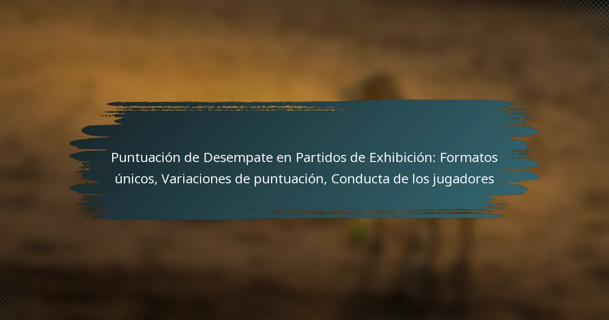 Los partidos de exhibición a menudo utilizan varios formatos de desempate comunes, incluidos el super desempate, el desempate de partido y los formatos de primero en llegar a 10. El super desempate reemplaza típicamente el set final, donde el primer jugador en alcanzar 10 puntos con un margen de dos gana. El desempate de partido puede ser similar, pero puede involucrar diferentes umbrales de puntos o variaciones en la puntuación.